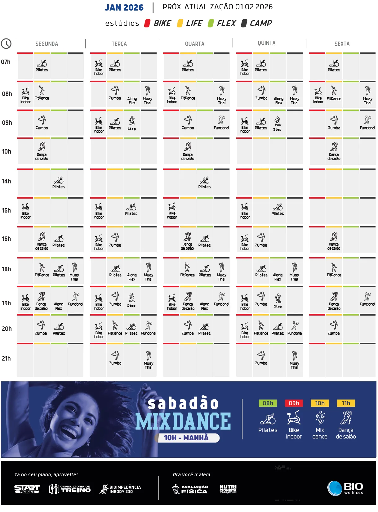 Escolha o horário ideal para o seu treino, aulas coletivas e consultoria